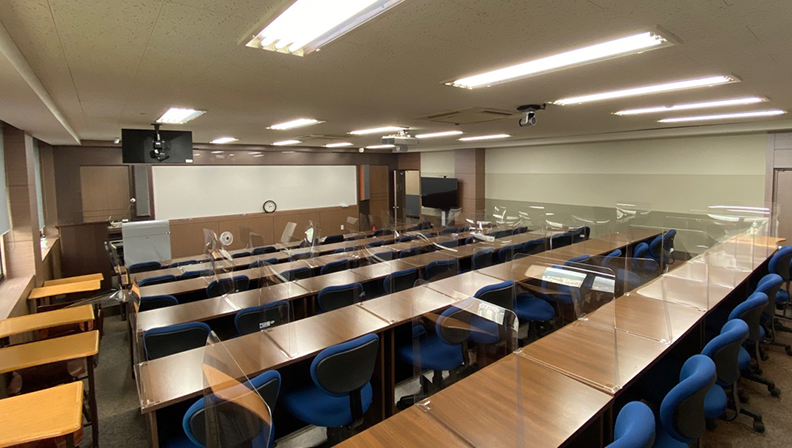 58석의 계단식 좌석, 디지털 HD, 4K 영상 상영이 가능한 이론 전용 강의실