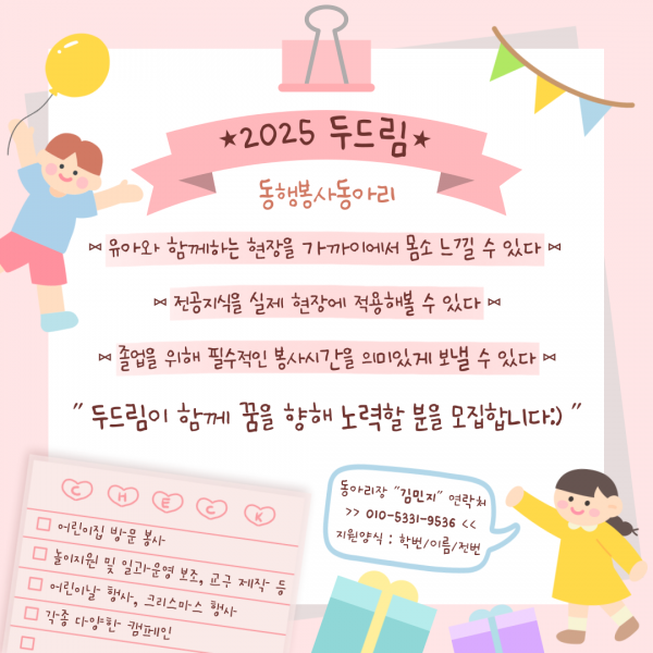 ‘두드림’은 단순한 봉사가 아닌, 예비 유아교사로서의 성장과 배움을 함께할 수 있는 소중한 기회가 될 것입니다.