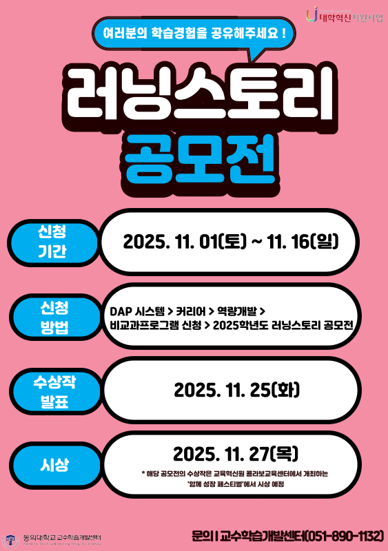 [대학혁신지원사업] 2025학년도 러닝스토리 공모전 신청 안내(~25.11.16.)