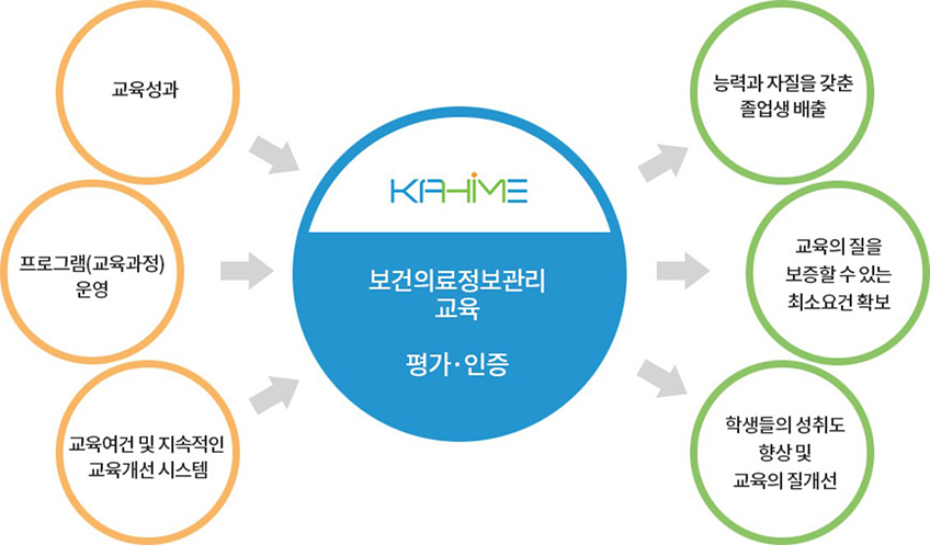 보건의료정보관리 교육 프로그램(교육과정)이 교육구성의 제요소 및 성과 중심 교육체제를 갖추고 교육의 질을 지속해서 개선·관리하도록 함으로써 보건의료정보관리 교육의 발전을 촉진하고 양질의 보건의료정보관리사를 배출하는데 기여하는 것입니다.