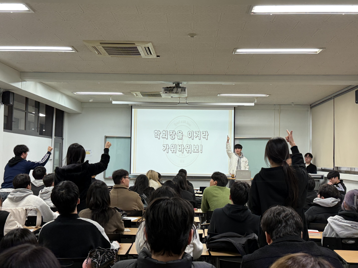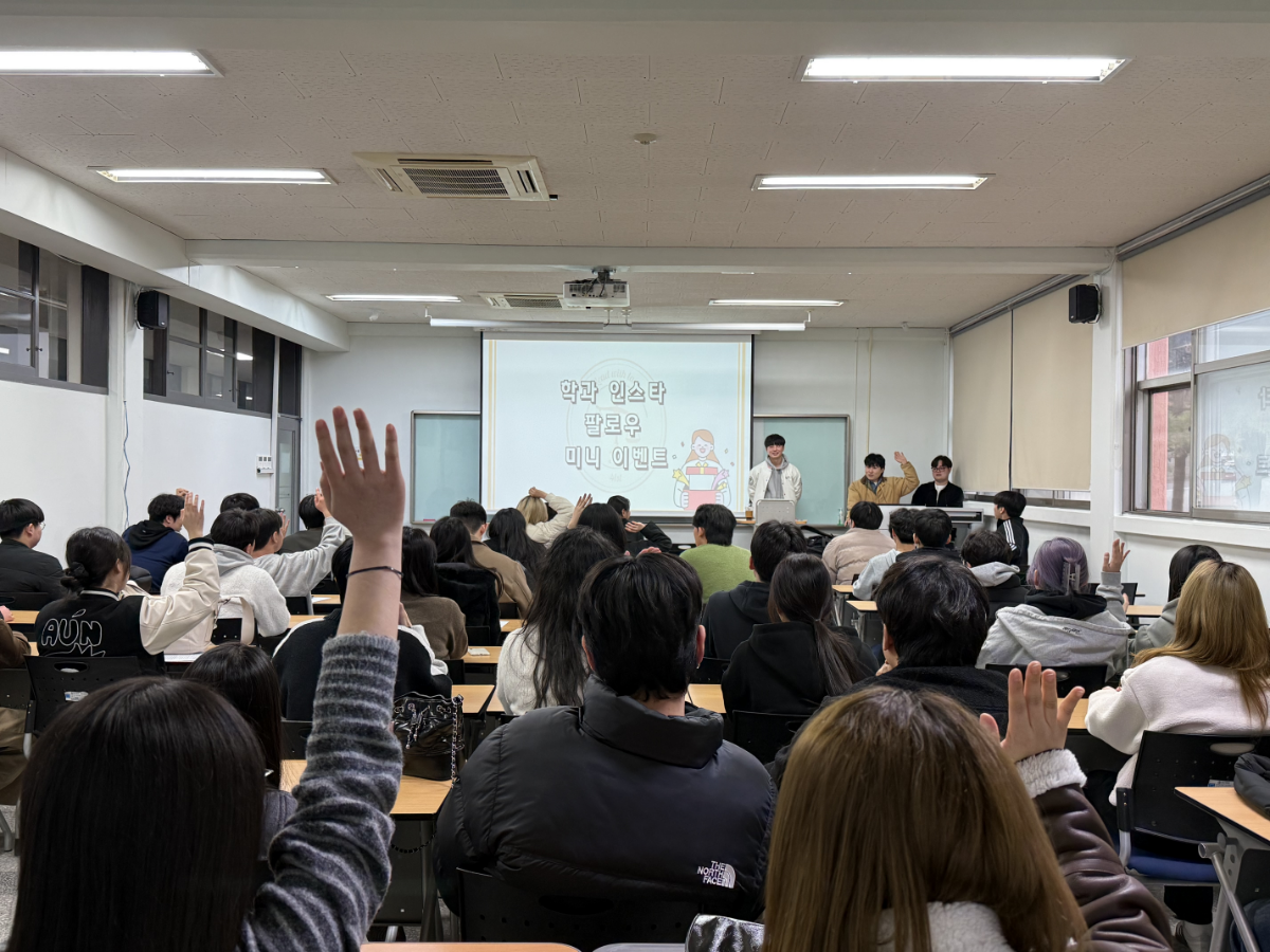 오후 5시, 법정관 302호에서 이루어진 개강총회는 학생회 소개 - 교수님 소개 - 차장 모집 공지- 과장 디자인 소개 - Q&A- 공지사항 - 미니게임 순으로 진행되었습니다.