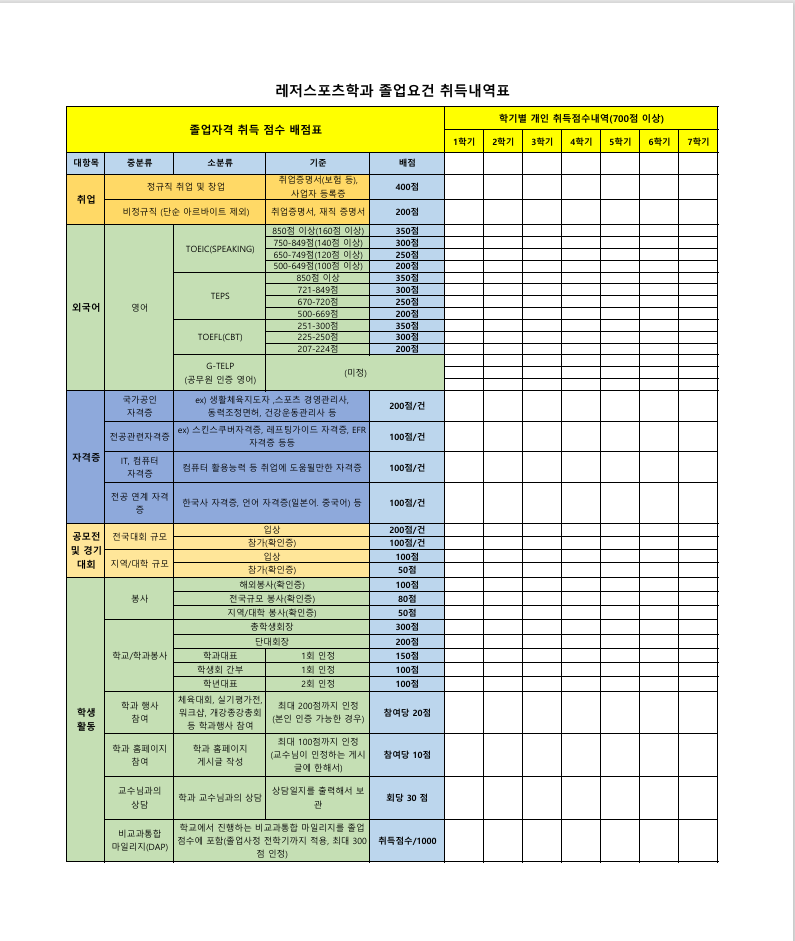 2025학년도 레저스포츠학과 졸업사정 예정표