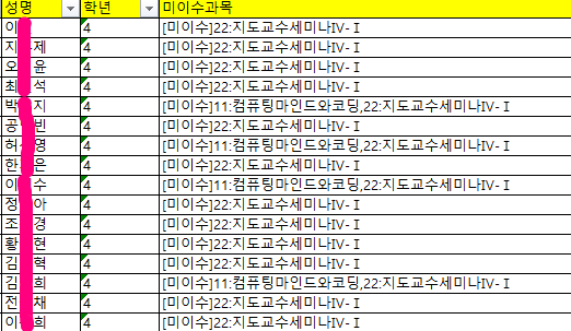 ⦁지도교수세미나(100117-001) 미수강자(첨부 명단 확인)