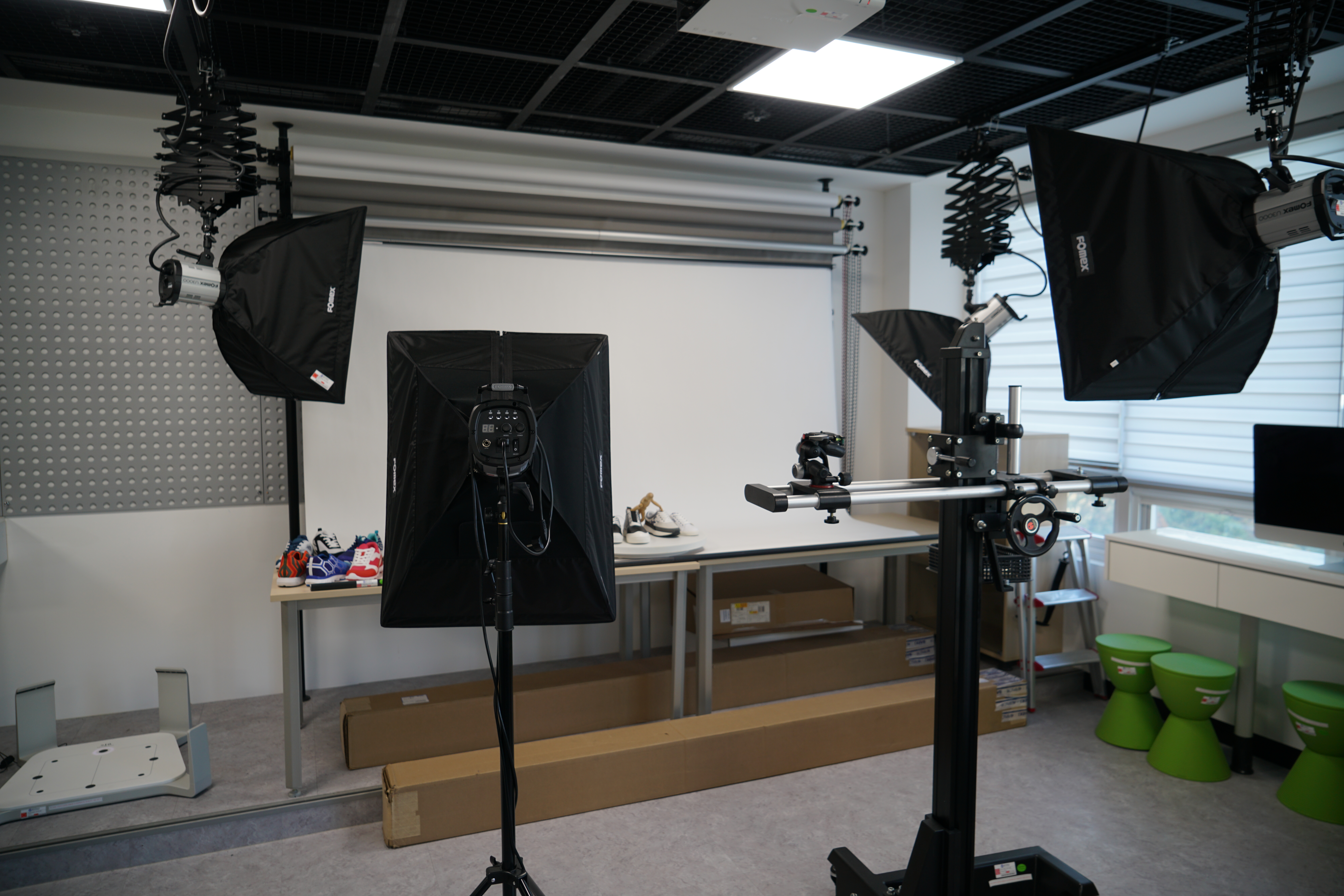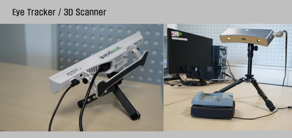 제품디자인의 학습을 위한 사진촬영, 동영상 촬영 및 편집을 진행하고, KJ법등 디자인 방법론과 프로세스를 다양하게 지원하고, 아이트레커와 색채분석기를 통하여 색상을 분석하는 시스템이 구비되어 있는 실습실 입니다.