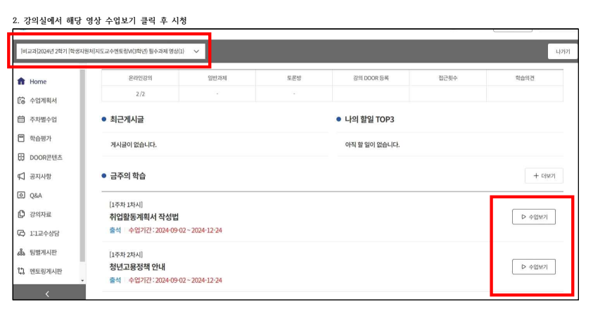 2024-2학기 지도교수멘토링 필수과제 수행 및 제출방법 안내(영상시청 방법 안내)