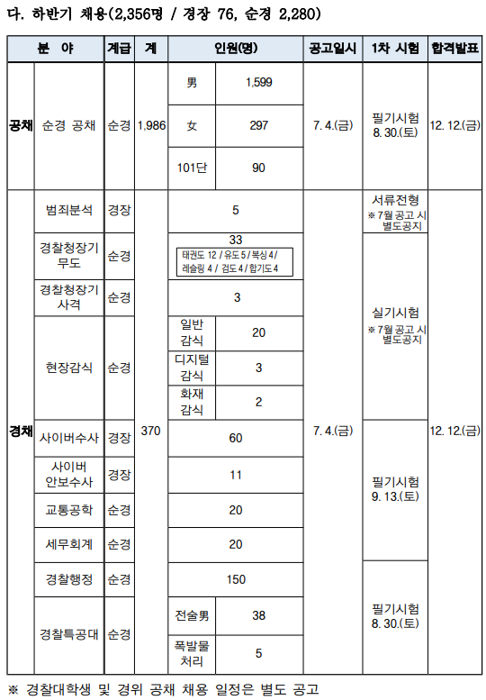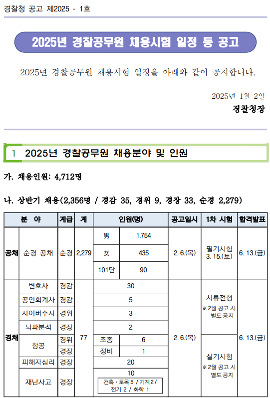 2025년 상반기 경찰공무원(경사 이하) 경력경쟁채용시험 공고