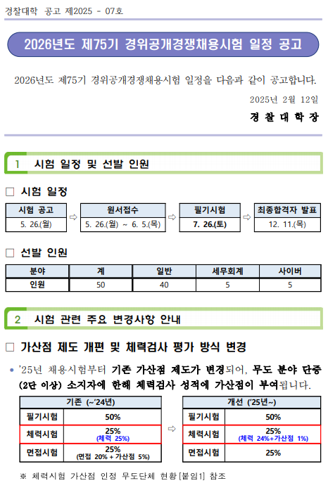 2026년도 제75기 경위 공개경쟁채용시험(경찰간부후보생) 일정 공고