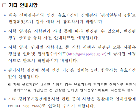 2025년 상반기 경사이하 경찰 경력채용 최종합격자 발표 및 입교안내
