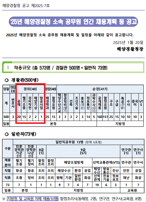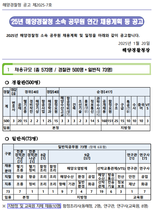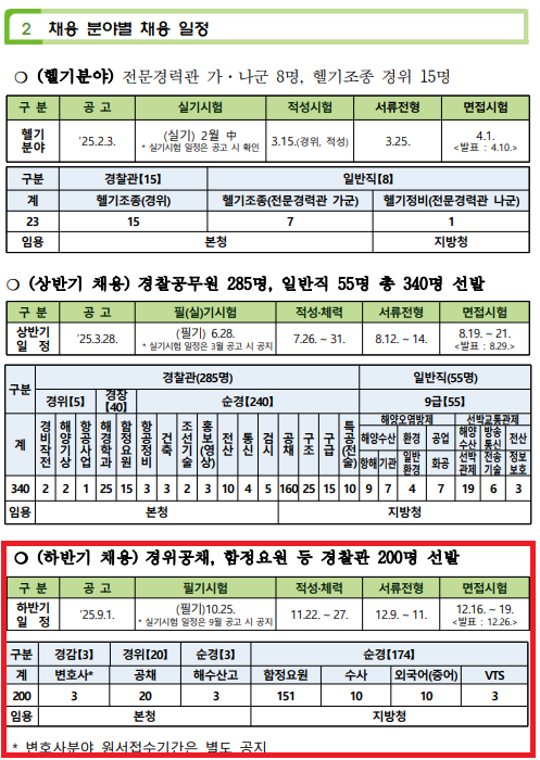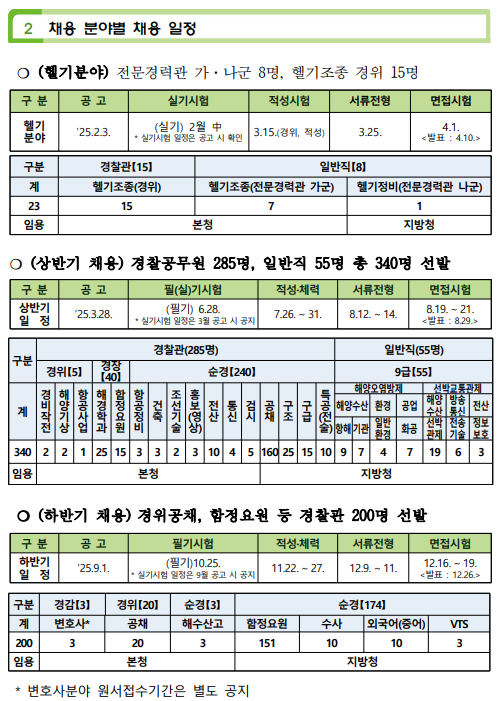2025년 해양경찰청 소속 공무원 연간 채용계획 등 공고(변경되는 채용제도 포함)