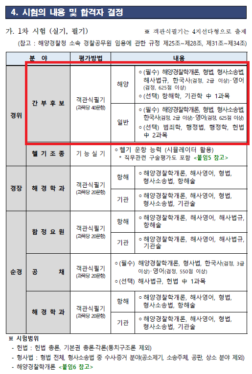 2022년 해양경찰공무원 채용시험 과목 변경사항