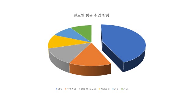 졸업 후에는 경찰, 검찰, 법원, 교정, 보호관찰 등 형사사법기관과 국정원, 군 수사기관, 소방관, 세관, 마약단속반, 전매, 삼림경찰 등과 같은 전문직뿐만 아니라, 일반 기업체나 학계로도 진출할 수 있습니다. 또한 졸업과 동시에 매년 일부 경찰로 특채되고 있으며, 경찰 간부후보생 시험에도 응시할 수 있는 자격이 부여됩니다. 2021년부터는 수사권 조정이 이루어지고, 자치경찰제도가 시행되면서 시도 경찰청별로 경찰학 전공자 중에서 특채제도가 제도화 될 것으로 예상됩니다.