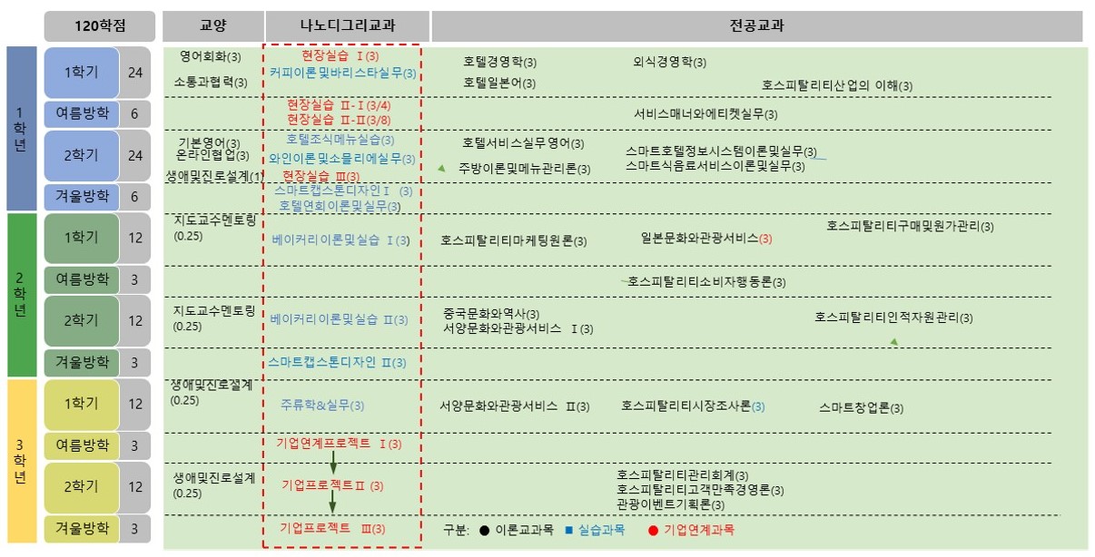 호텔경영, 외식경영, 호텔조리, 카페창업 등 환대산업에서 요구되는 다양한 핵심과제를 이수하여