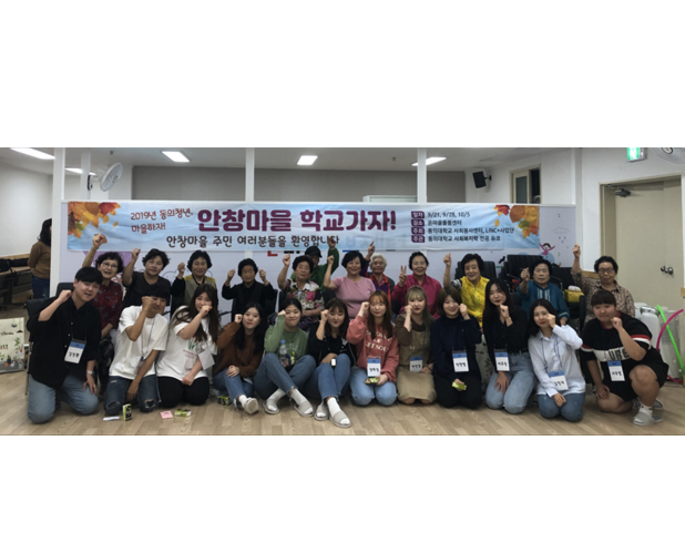 듀코는 대상 지역을 쾌적하게 만드는 환경정화 활동 뿐 아니라, 지역주민들과 과일청을 담그고 함께 식사를 하거나, 운동회를 하는 등 다양한 체험활동을 진행합니다. 그 중, 듀코의 대표 프로그램은 ‘OO마을, 학교가자’ 입니다. 대학을 이수하지 못한 어르신들을 대상으로 대학생 체험을 함께하는 프로그램입니다. 이렇듯 다양한 프로그램을 기획하고 진행하며 예비사회복지사의 역량을 강화시킵니다.