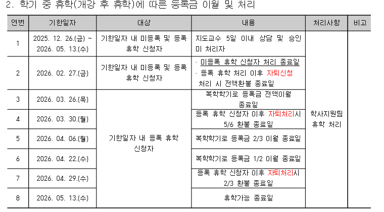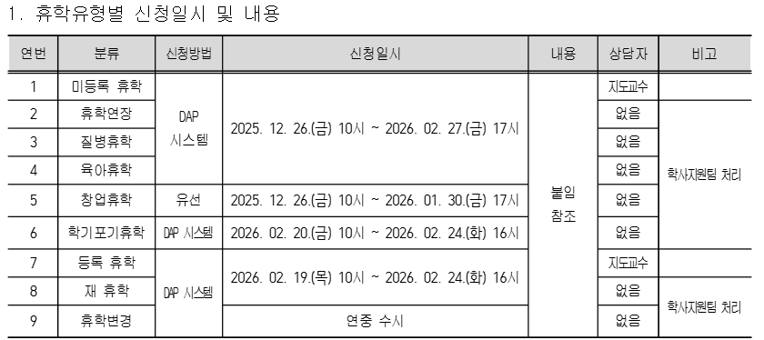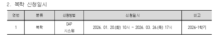 [2026학년도 1학기 휴·복학 일정 및 내용 안내]