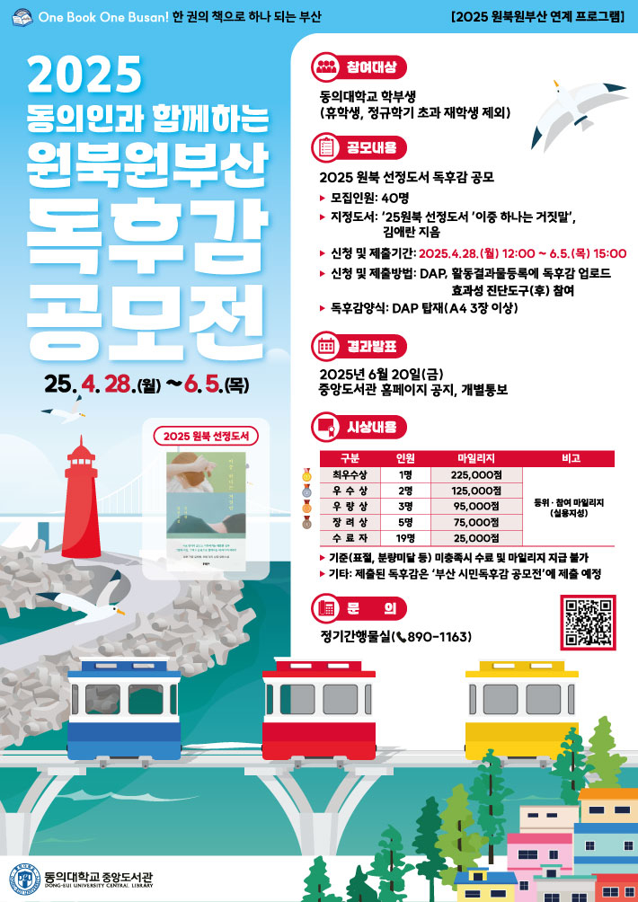 [중앙도서관] 2025 원북원부산 연계 독후감 공모전 개최