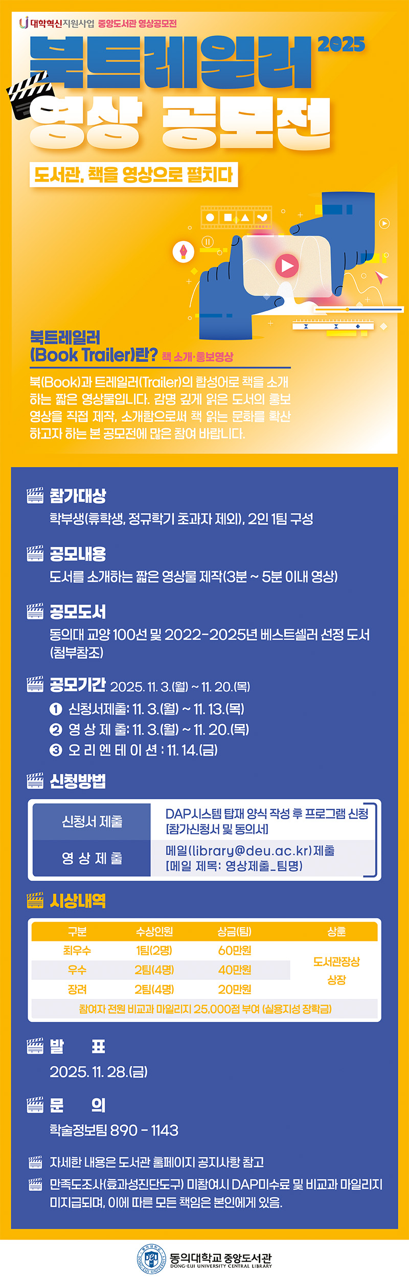 [중앙도서관] 2025학년도 '영상 공모전' 개최 안내