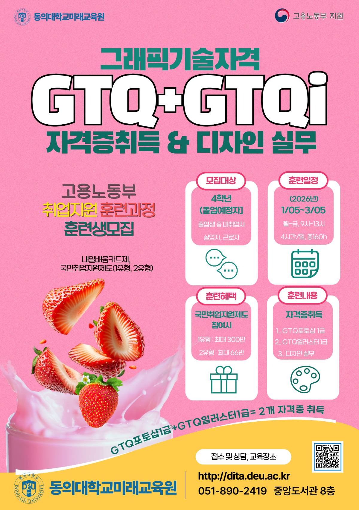 [미래교육원] 정부지원 GTQ1급(포토샵, 일러스트) 자격증 취득 훈련생모집(4학년)
