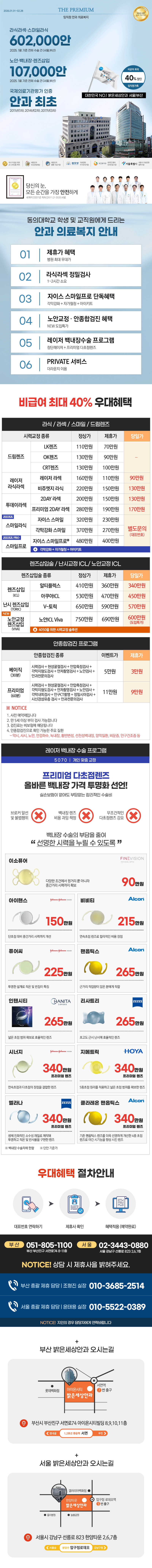 - 전문분야 : 라식라섹 / 스마일라식 / 렌즈삽입술 / 노안교정 / 안종합검진