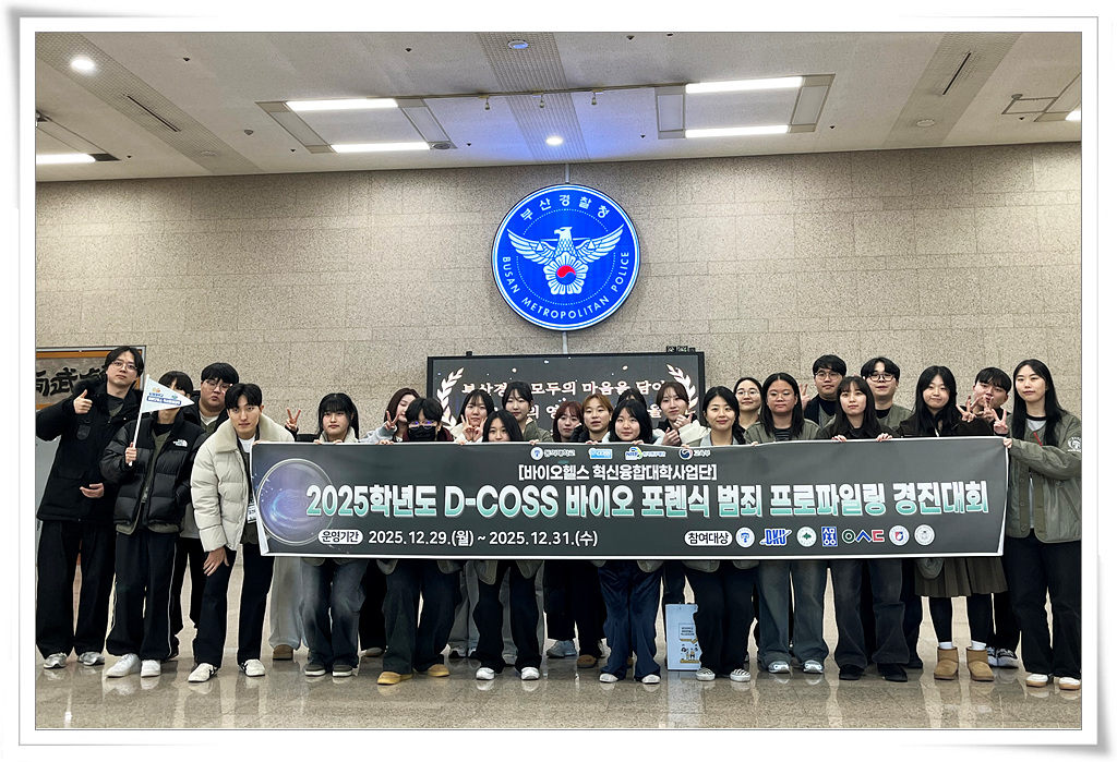 동의대학교 바이오헬스혁신융합대학사업단(단장 정경태)이 지난 12월 29일~31일까지 동의대와 부산경찰청에서 ‘2025학년도 D-COSS 바이오 포렌식 범죄 프로파일링 경진대회’를 개최했다.