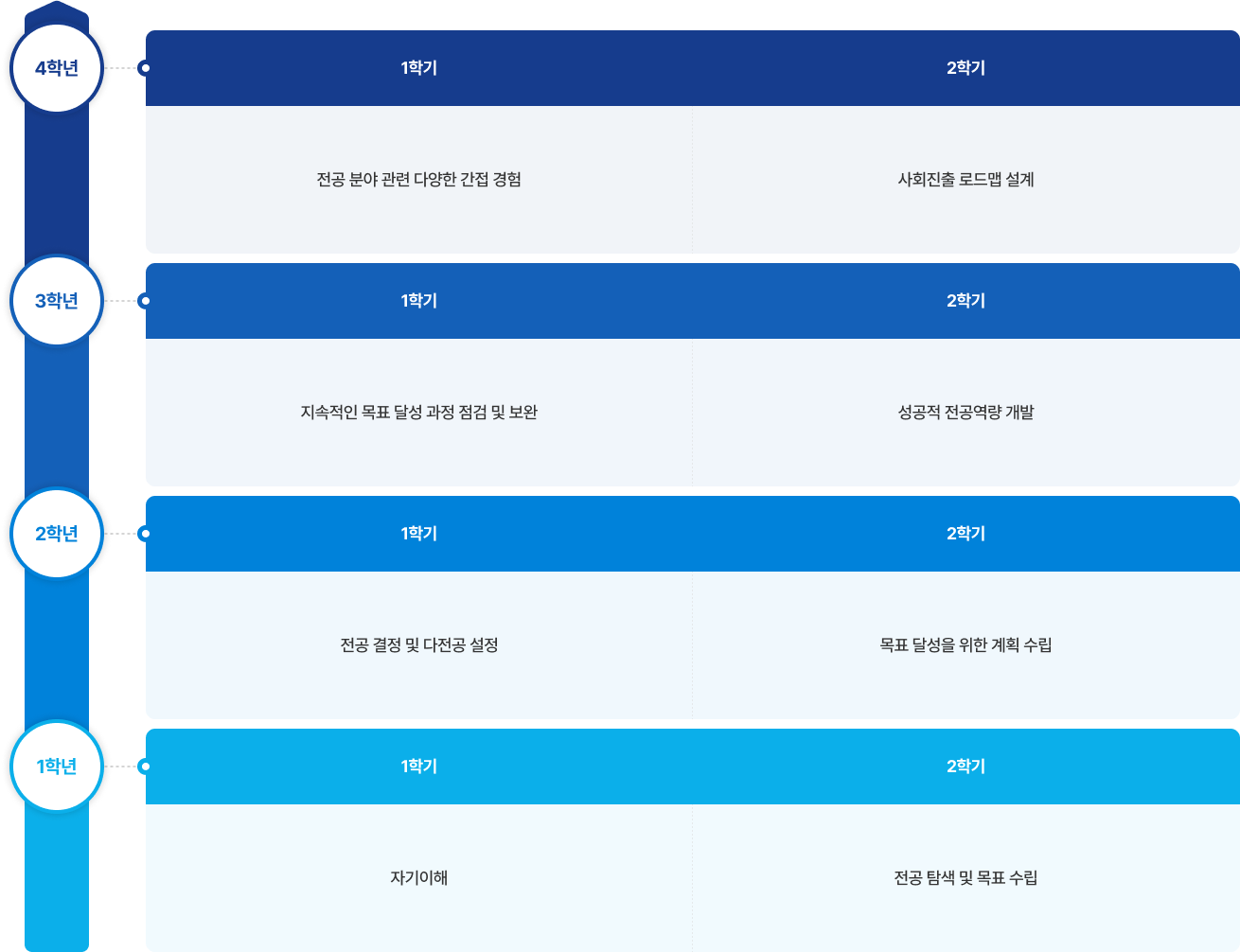 이 과정은 학생들이 전공을 선택할 때 단순히 관심 있는 분야에 대한 탐색뿐만 아니라, 해당 전공이 자신의 미래 직업과 어떻게 연결되는지에 대한 깊은 이해가 필요합니다.