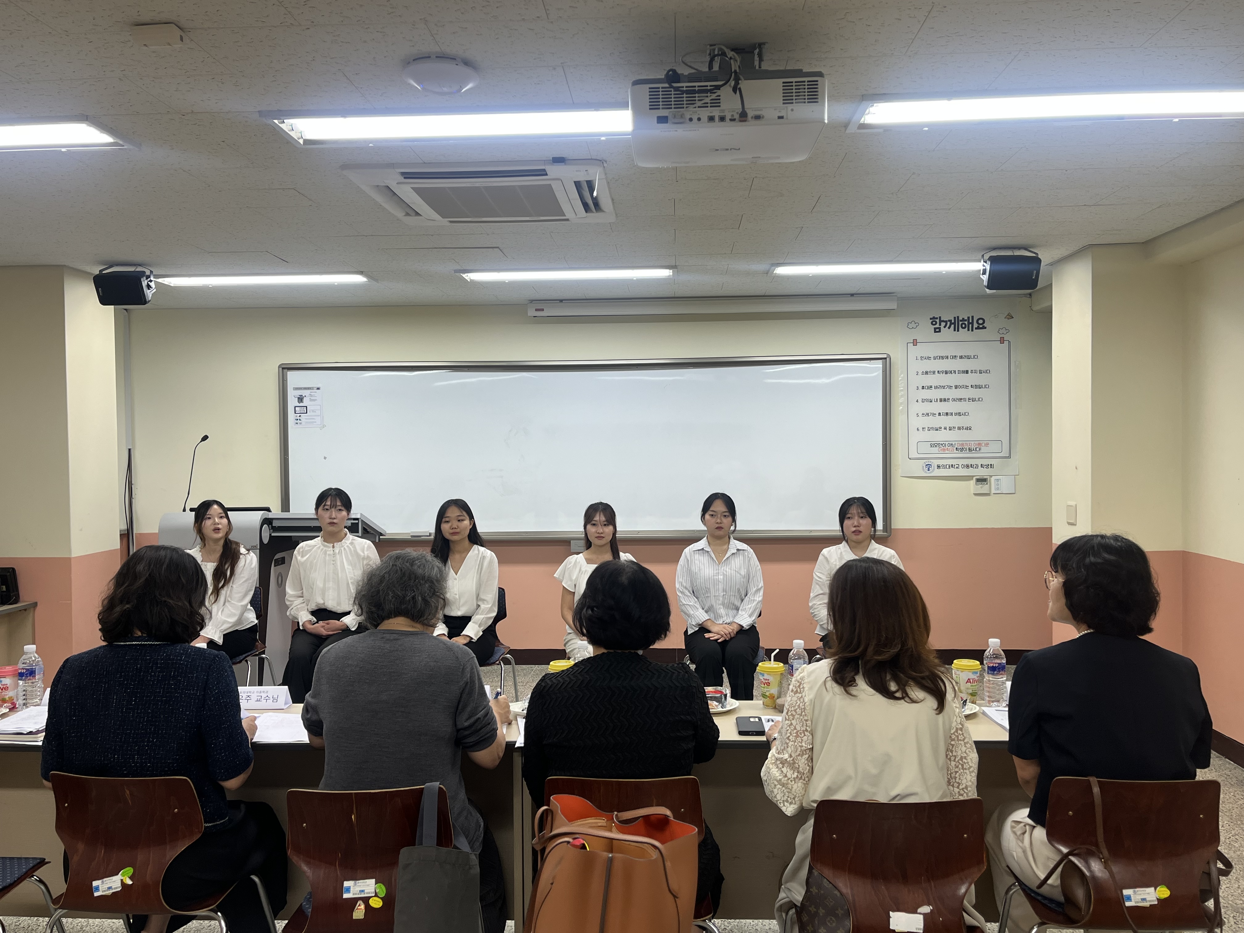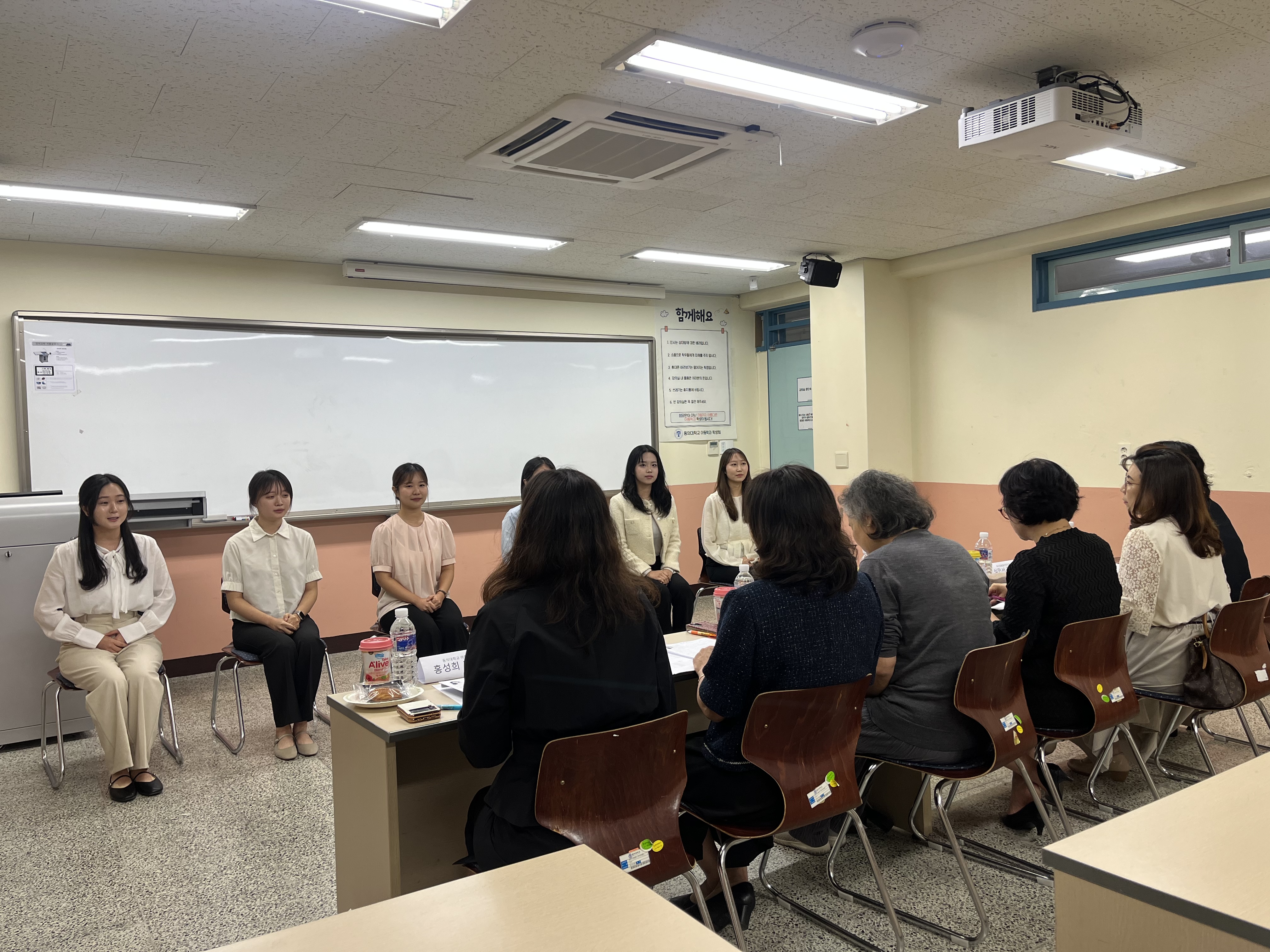 보육교사를 희망하는 학생들을 대상으로 취업대비 2차 모의면접이 진행되었습니다. 이번 모의면접은 1차보다 심화된 실제 면접 상황을 반영하여 진행되었으며, 부산경찰청어린이집 원장님, 부산 하나금융공동직장어린이집 원장님, 수정삼성어린이집 원장님과 구은미 교수님, 손은주 교수님, 홍성희 교수님께서 면접관으로 함께 참여해 주셨습니다. 학생들은 1차 모의면접에서 받은 피드백을 바탕으로 준비한 이력서와 자기소개서를 활용하여 면접에 임하였고, 교수님들과 원장님들로부터 구체적이고 실질적인 피드백을 받으며 자신의 강점과 개선점을 확인할 수 있는 뜻깊은 시간이 되었습니다.