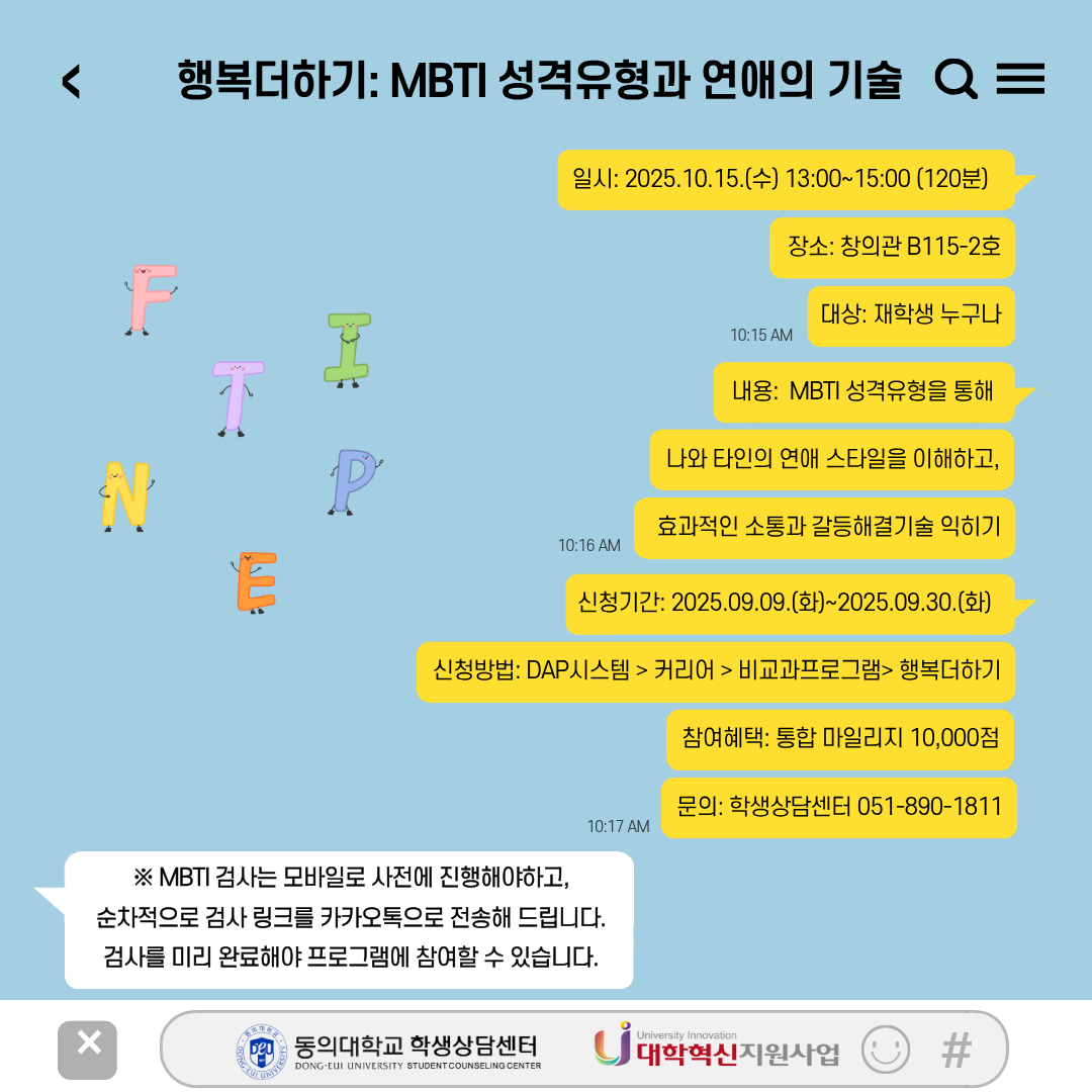 ๐คํ๋ณต๋ํ๊ธฐ: MBTI ์ฑ๊ฒฉ์ ํ๊ณผ ์ฐ์ ์ ๊ธฐ์ ๐ค