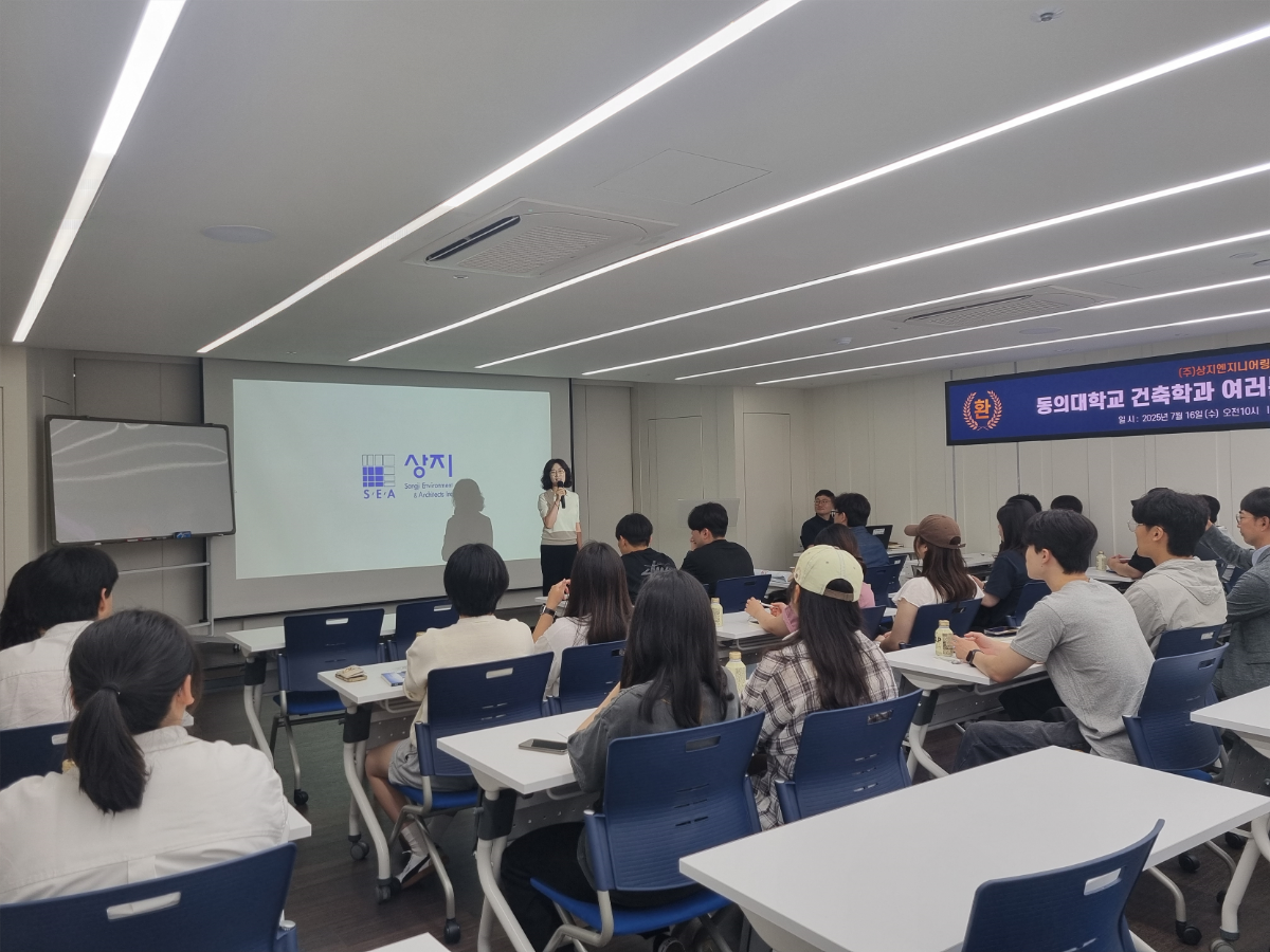 2025년 7월 13일(수) 동의대학교 건축학과(지도교수: 김희근)는 동의대학교 대학혁신지원사업 일환으로 학부 재학생(1~3학년) 22명을 대상으로 2025학년도 지역·현장 견학 프로그램을 진행하였다. 전공 직무역량 강화와 지역 건축 현장에 대한 이해 제고를 위해 진행된 본 프로그램은 재학생들의 관심도가 높은 상지엔지니어링건축사사무소 및 부산지역 프로젝트인 ‘굿올데이즈호텔 (설계: 건축사사무소 MOC 대표 신주영·황현혜)’, ‘모퉁이 (설계: 라라호호건축사사무소 대표 조호제)’의 현장을 직접 방문함으로써 동시대 지역 건축의 흐름과 공간적 가치를 경험하고, 체험하는 계기를 갖게 되었습니다.