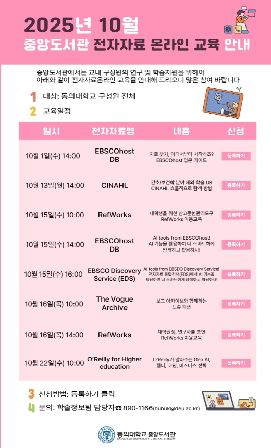 2025년 10월 중앙도서관 전자자료 온라인 교육