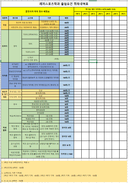 2025학년도 레저스포츠학과 졸업사정 예정표
