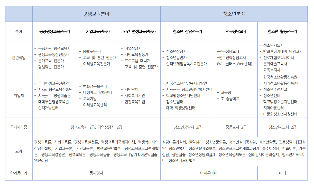 미래를 선도하는 평생교육‧청소년지도‧청소년상담의 융합 인재 양성