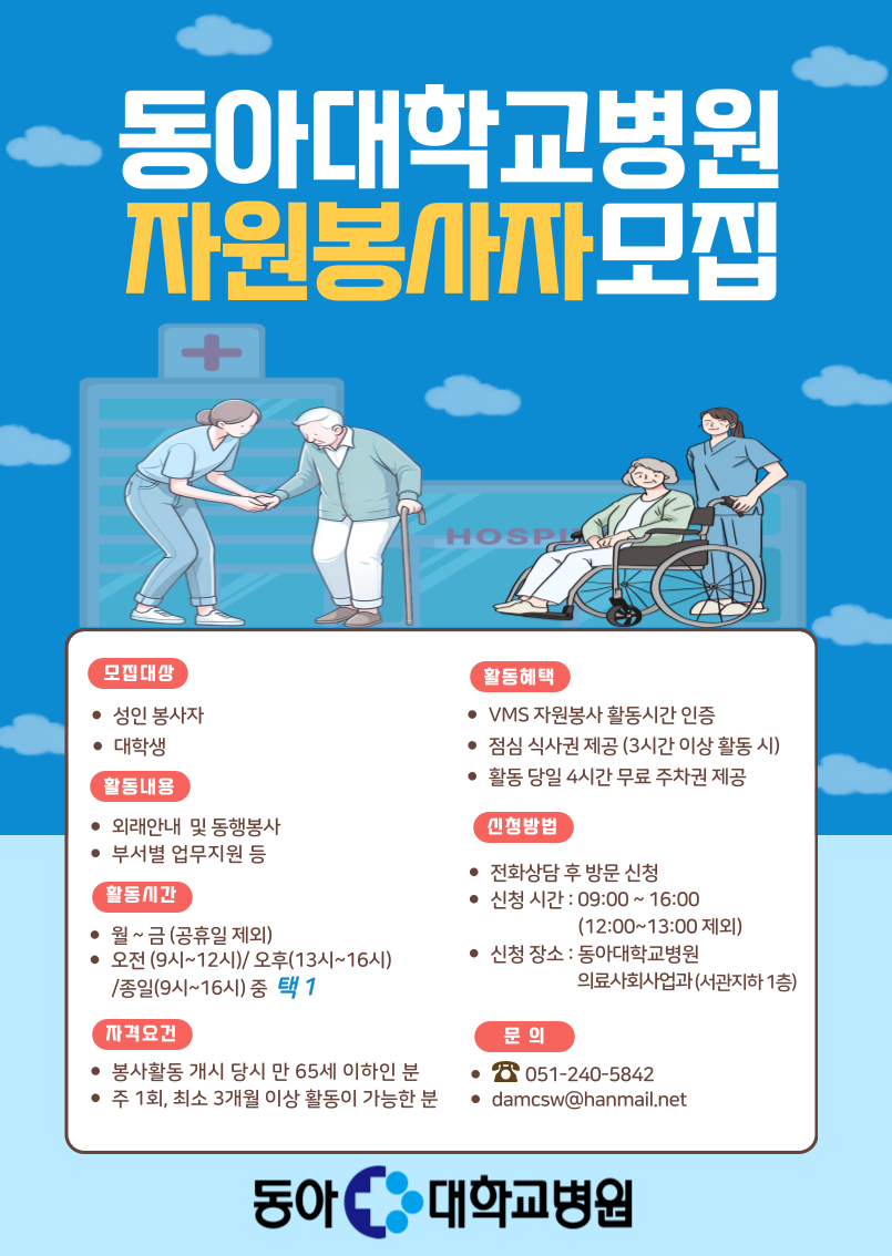 2025년 동아대학교병원 자원봉사자 모집