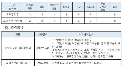 2. 이에 2024학년도 동의대학교 직원동문회 장학생을 다음과 같이 선발하고자 하오니