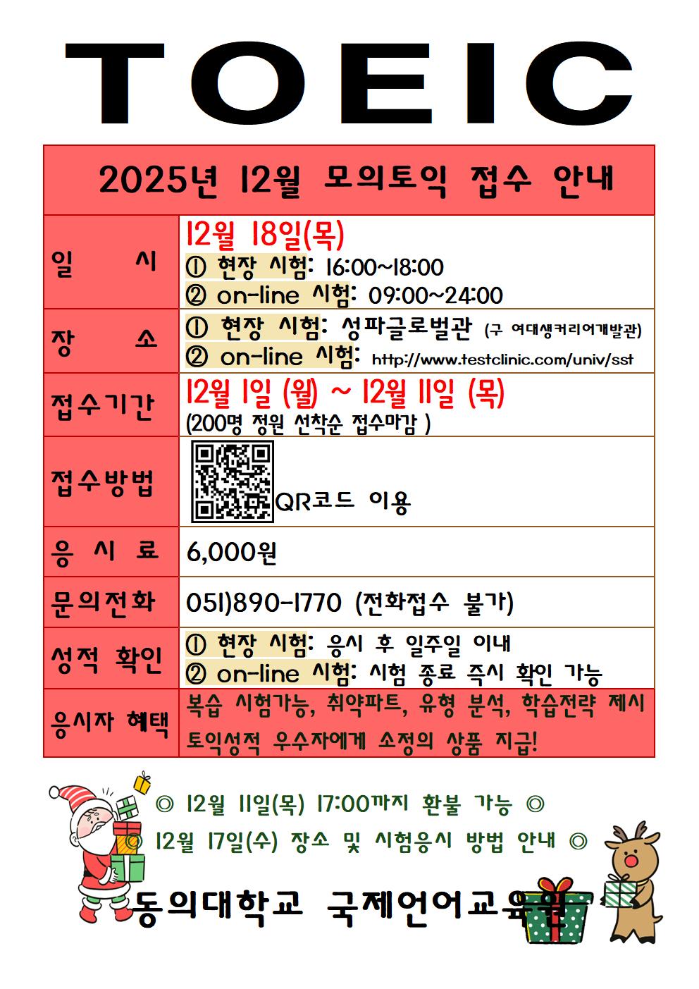[국제언어교육원] 2025학년도 12월 모의토익 접수안내