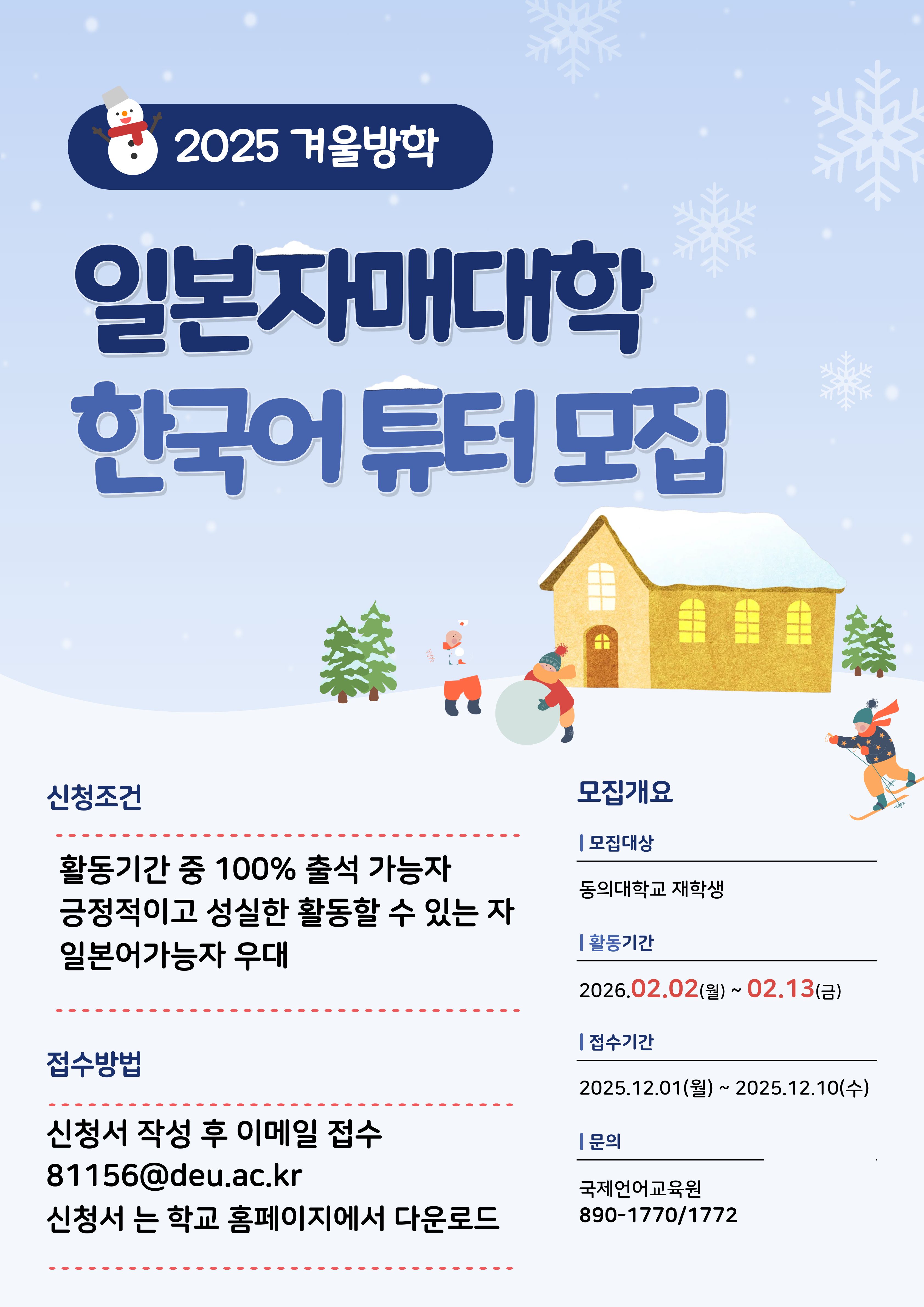 [국제언어교육원]동계 일본 자매대학 한국어 튜터모집